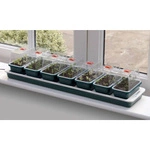 Heated tray with 7 greenhouses for planting and cloning plants.