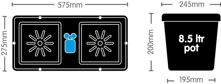• Square pot 8.5L Autopot AP209/SQ/BLACK
