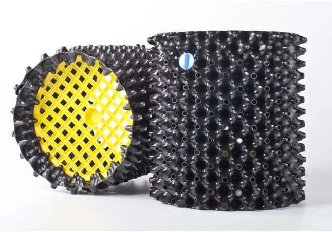 Air-Pots® have unusual, profiled walls, a type of configuration of egg-shaped extrudates, consisting of closed inside cones and cones open to the outside. In traditional pots, the flat walls inside the container repulse the roots and trigger the spiral of the process, in which the roots lengthen without increasing the root mass.