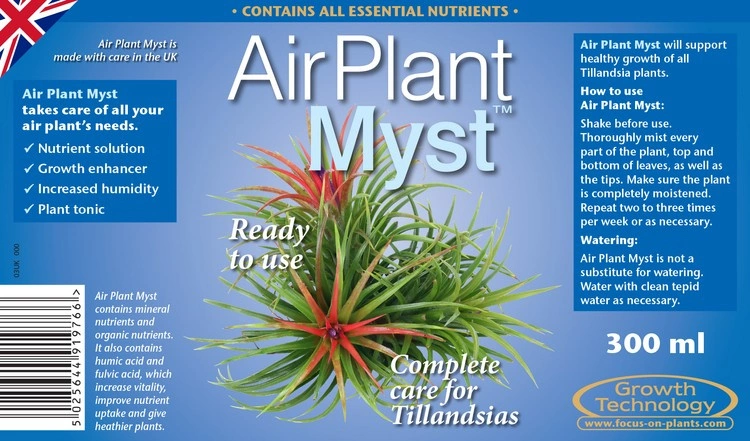 Air Plant Myst contains mineral and organic nutrients. It also contains humic acid and fluvic acid that increase vitality, improve nutrient absorbtion and produce healthier plants.