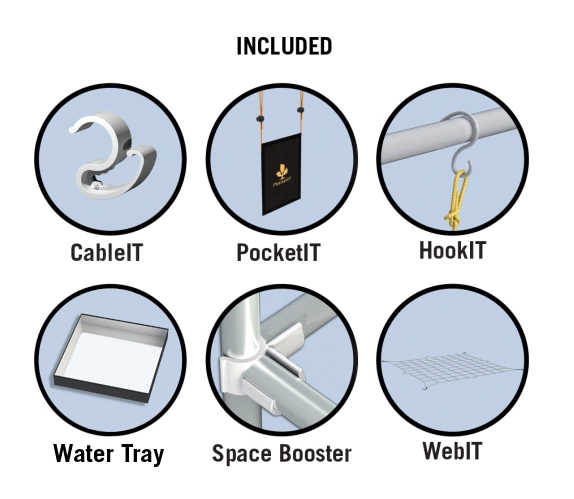 -reinforcing frame consisting of 4 tubes with a diameter of 16mm - ideal for stabilizing the design of the tent and making it easier to hang lamps, fans, filters, etc.