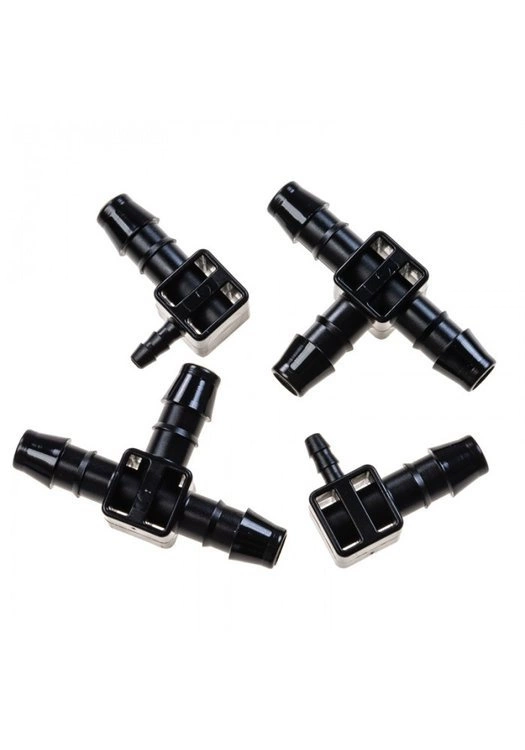 A set of fittings for arranging the Tropf-Blumat irrigation system consisting of a type-T connector allowing the hose to be branched and the irrigation system to be expanded. The end connector closes the 8mm supply hose and simultaneously connects the last Tropf-Blumat drip in a row.