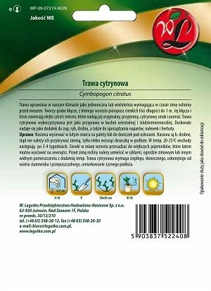 Grass forms thick rhizomes, from which grows a plume of thin leaves up to 1m long. Lemongrass in our climate is grown as a one-year or perennial plant requiring protection from frost during winter. Her mare and leaves contain citral and mircen oils, which give her an original, pleasant, lemony taste and aroma.