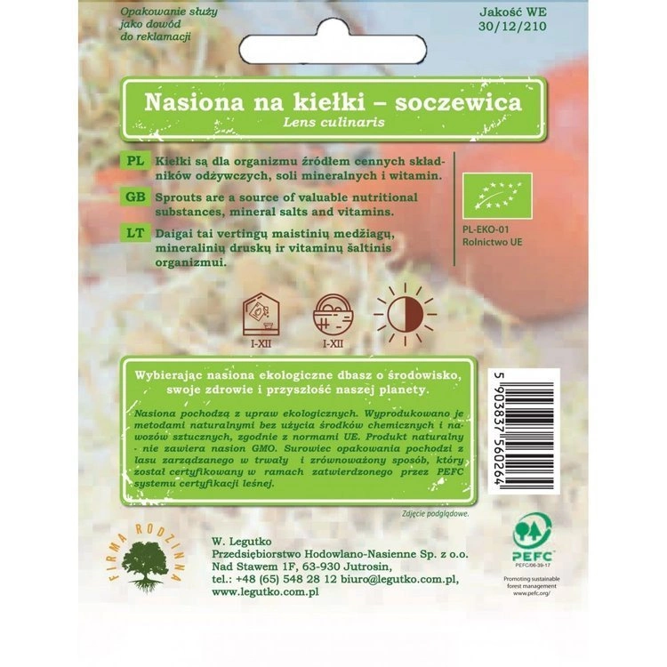 Characteristics of the plant Lentil sprouts are especially recommended for pregnant women, as they are rich in folic acid, a substance closely related to the normal development of the brain and nervous system of the future baby. In adulthood, folic acid deficiency causes m.in. inhibition of the hematopoietic process in the bone marrow. Lentil sprouts are also rich in B vitamins and amino acids, in addition, we find in them large deposits of calcium, zinc, iron, potassium, magnesium and phosphorus. They are an excellent source of vitamin C, effectively counteract viral infections and have an anti-cancer effect. They have a beneficial effect on teeth and complexion, help with diseases such as diabetes, cholelithiasis, atherosclerosis. Like alfalfa sprouts, they can be eaten by people who do not tolerate iron preparations. Sprout sowing: Production of sprouts is easiest to carry out on the germination: rinse the seeds soak for 8-10 hours in warm, boiled water, and then evenly spread on the grid of the dishes into sprouts. Add water to the bottom level of the grid and take care of its systematic replenishment and replacement, while sprinkled seeds over the next few days. Sprouts can also be produced in a jar: rinsed seeds in a clean jar and poured for several hours with water. Then pour water, rinse the seeds, cover the jar with gauze, tie and set in a warm, sunlit place. Rinse the sprouts and pour water twice a day. After 4-5 days, the sprouts are ready for consumption. |