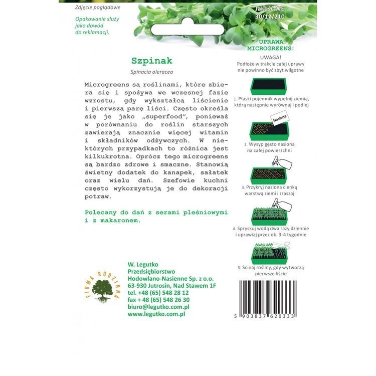 Microgreens seeds "Spinacia oleracea" 10g spinach seeds