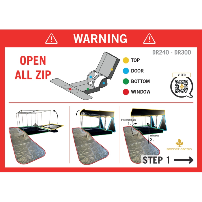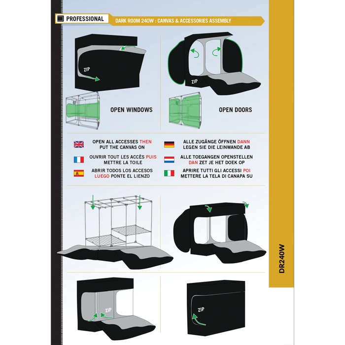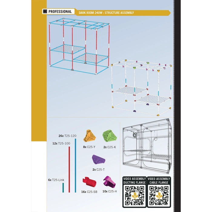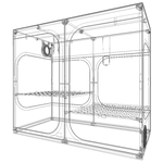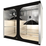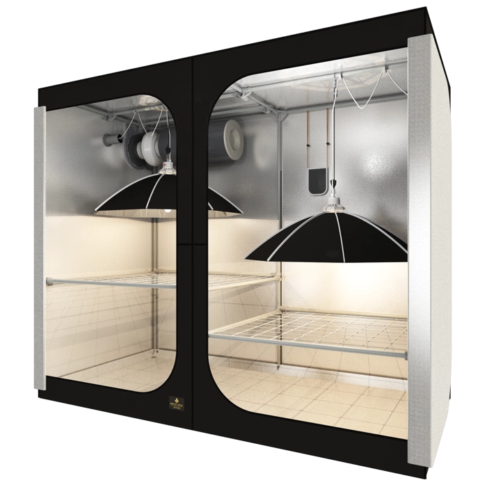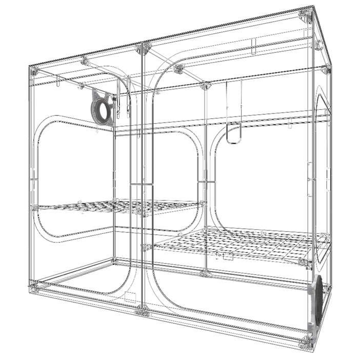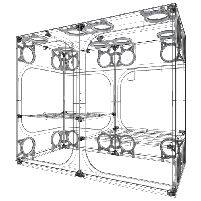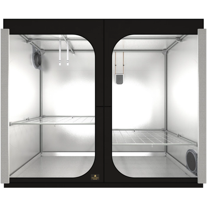 The Dark Room has all the benefits of Dark Street series, and a lot more. It is made with an indestructible Ø25mm Stainless Steel structure for the highest durability of the market. You can optimize your ventilation thanks to the included Ducting Flange system. It also offers 360° openings for an easy access to your plants, and possess a super-strong fibered liner Water Tray.