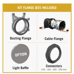 | Ducting Flange | 2x Support Ø250mm 2x Connector Ø200mm Light Baffle : Option Video : https://youtu.be/nGxMsZPl4nU |
