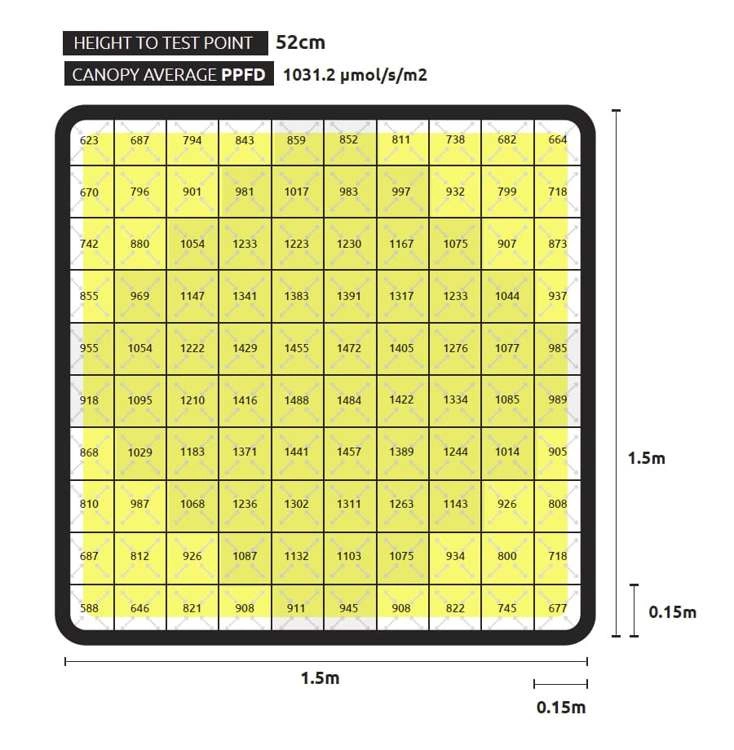 FOOTPRINT: 1.5x1.5m with Supp. CO2; 1.8x1.8m without Supp. CO2 used at higher heights.