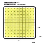 This LED panel measures 118.12 x 109.10 x 10.57 cm and weighs 18 kg. It covers an ideal area of ​​1.8 x 1.8 m when using without introducing CO2 (making sure the PPDF level is not too high) or an area of ​​1.5 x 1.5 m when using with CO2 as the light can be much closer plant tip (tolerate higher PPFD).