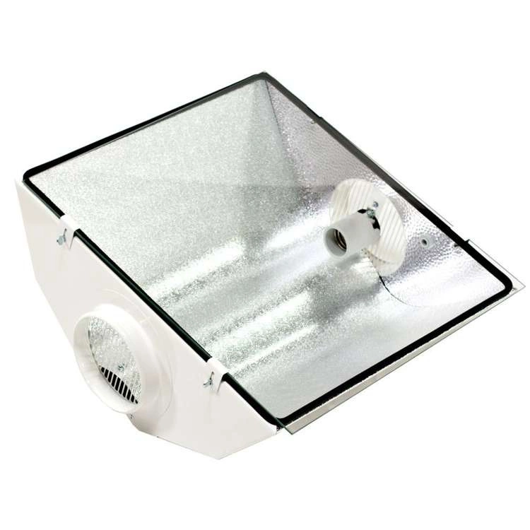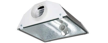 The Spudnik is air-cooled reflector with optimised design of inner reflectors to increase the PAR to highest levels. The PVD-coated aluminium ensures up to 95% reflection after patterning process. The double walled housing with tunnel cooling effect guarantees optimum cooling. The safety glass with polished edges and 93% transmission reduces losses through the glass. White side panels, made of heat-resistant and impact-resistant, glass-reinforced nylon with connecting flange and pre-wired junction box, make the Spudnik unique in the world and set a new standard. The quality E40 ceramic lampholder Made in Italy holds a valid CE certificate.