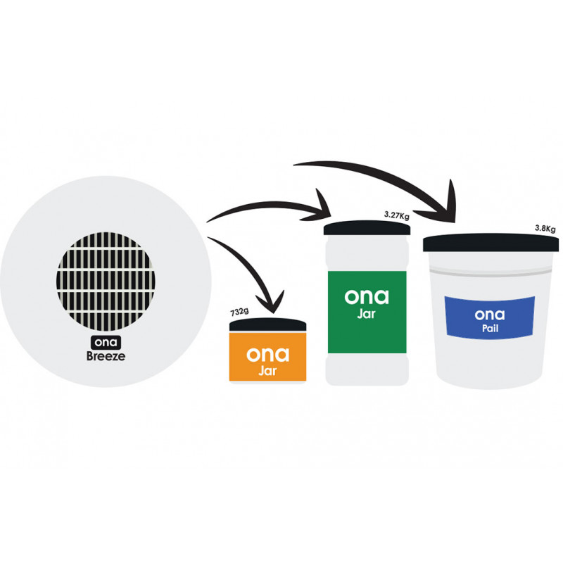 The ONA Breeze fan provides odour neutralisation for a medium sized room up to 1,500 square feet (15,000 cubic feet) or 160 square metres (500 cubic metres) for 3-6 weeks. This period will vary based on the ambient temperature and humidity levels of the room.
