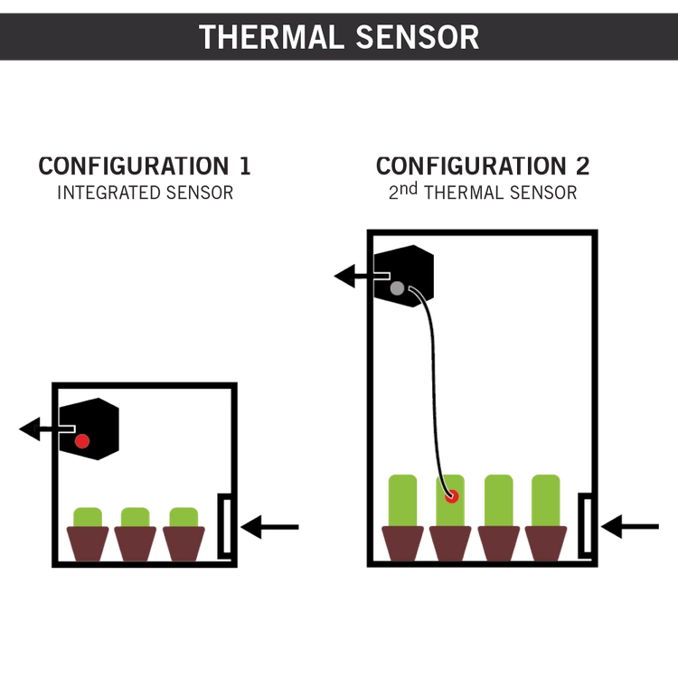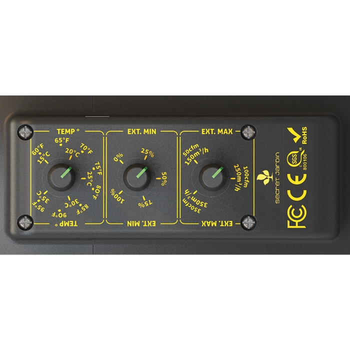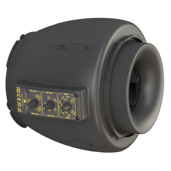 The fan has 3 setting modes: 150, 250 and 350 m3 and is equipped with two temperature sensors and a TC setting on a 24 volt centrifugal motor to be able to fully control and regulate the temperature inside growing rooms with a maximum area of 120 x 120 cm. < / span>