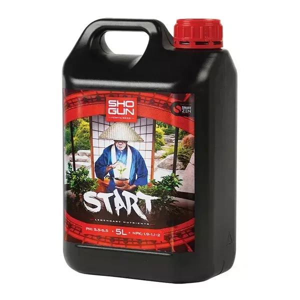 SHOGUN START is a delicate nutrient formulated to establish early plant and root development. Containing balanced micro and macro nutrients alongside the SmartZen maximiser ingredient. SHOGUN START gives your young plants full strength trace elements whilst still maintaining a low overall strength.