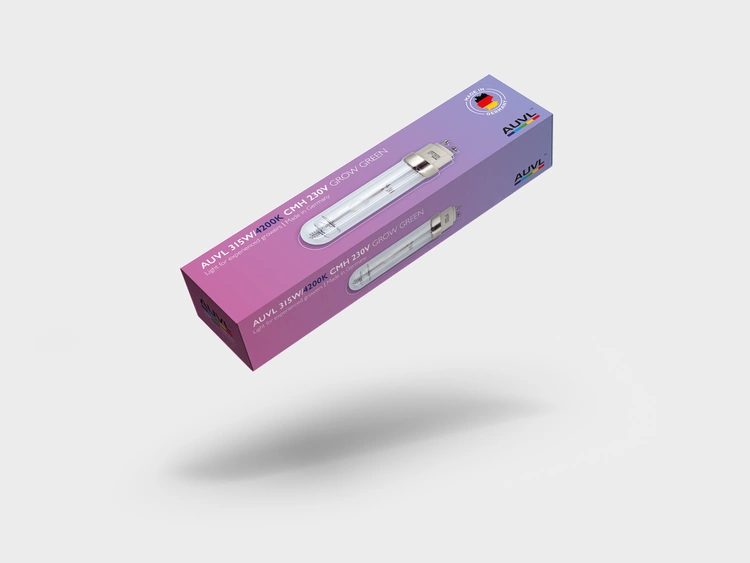 • lamp / bulb cmh 315W • model: AUVL 315W CMH 230V GROW GREEN • PGZX18 thread • intended for growing plants • color: 4200K • lifetime: 20000h • performance: 36000lm • 585 μmol / s • photosynthesis efficiency: 1.86 µmol / J