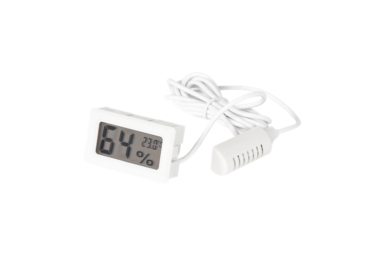 - Power supply: 2x 1,5 V battery LR44 (included) - Temperature range :: -20 ~ 70 ° C (-4 ~ 158 ° F) - Humidity range: 10% - 99% - Temperature measurement accuracy: ± 1 ° C (1.2F) - Accuracy of humidity measurement ± 5% RH - LCD display - The weather station has a stand so it can be placed anywhere - 1.5m cable - Weight 34.5g - Dimensions 48x28.4x15.8mm |