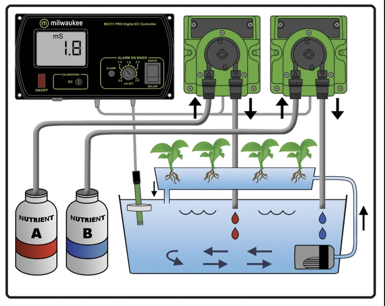 The Milwaukee MC745 PRO Conductivity (EC) controller and pump lets you measure and adjust EC levels automatically.