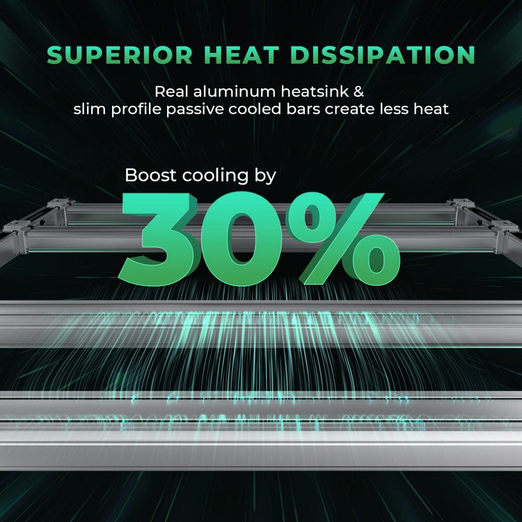 - Fast Passive Cooling- The Mars-Hydro FC-E series features a large aluminum heat sink with some space between each light bar to dissipate heat. The detachable power supply can be remotely mounted to the side of the grow tent/stand or to an adjacent wall to remove heat from the grow space.