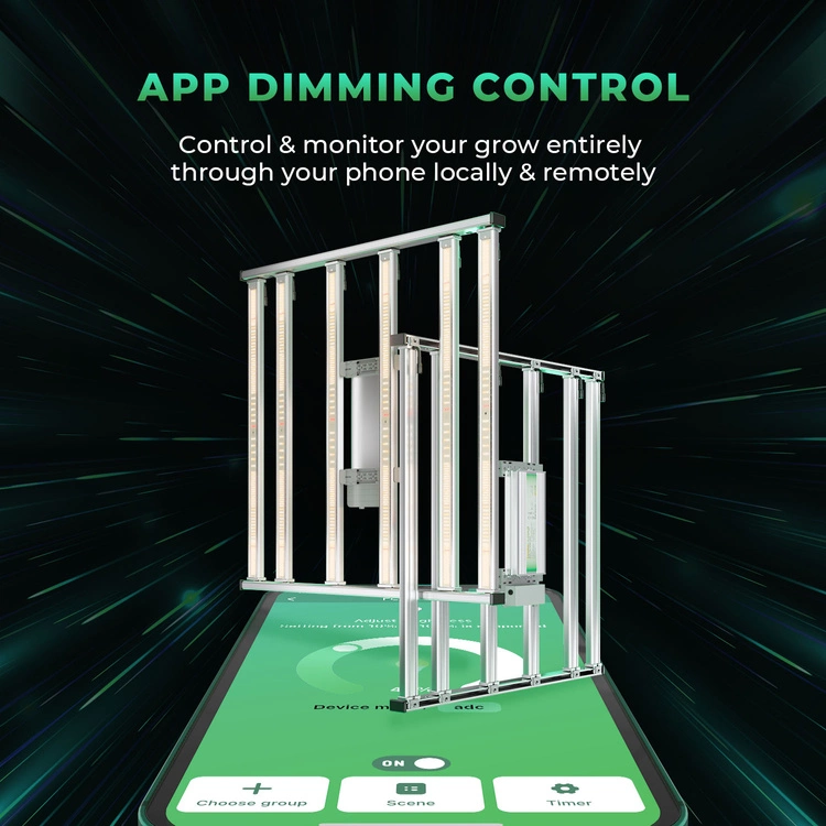 - Enable wireless multi-lamp control – Simultaneous switching and dimming of multiple grow lamps without additional wires or cables. For separate rooms, up to 12 lighting groups are available for independent management. The plans for the development of lighting groups will not conflict with each other.