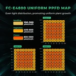 - High Performance LED Grow Light- The FC-E4800 grow light features high-quality BridgeLux LEDs for market-leading efficiency 2 .8 µmol/J and a maximum efficiency of 2.5 grams per watt. It consumes 480 watts with an average PPFD 30% higher than other lamps of the same wattage, providing better crop quality and greater cost efficiency, and reducing electricity bills by 50% than HID/HPS lamps!