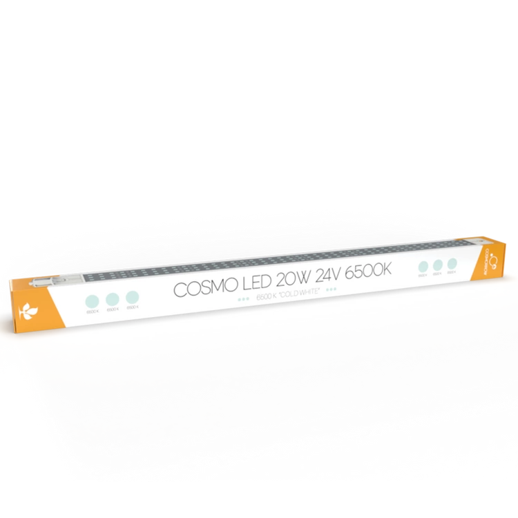 The 6500 Cosmorrow LED light, made up of “White 6500 °K” LEDs, is designed for the vegetative, cutting or growing stage. We recommend placing it as close as possible to the plants, as its surface temperature is low.