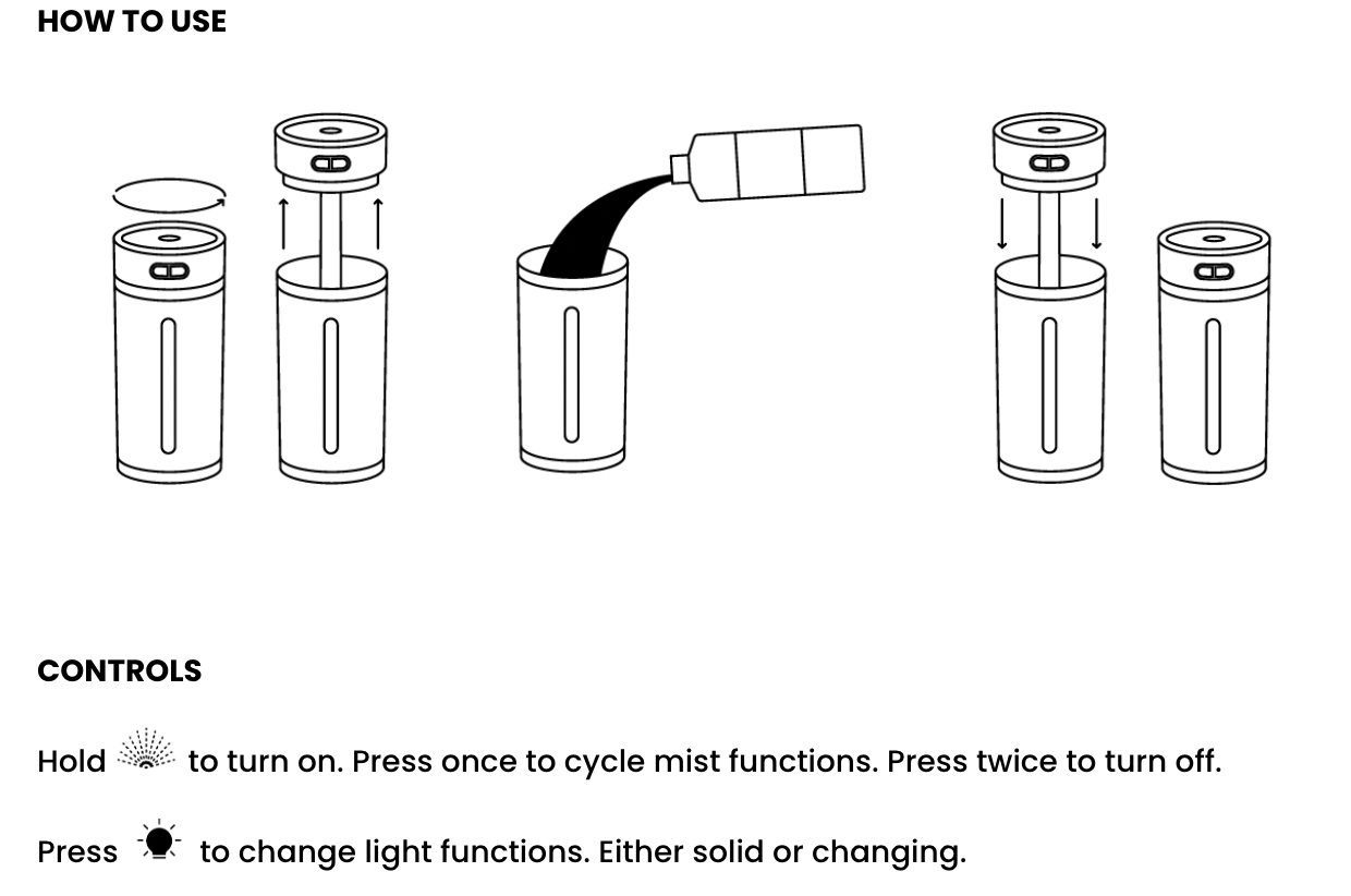 - Two settings of mist. Choose between constant and periodically.