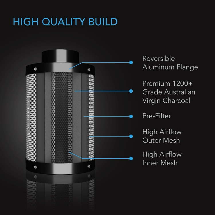 Pair the CLOUDLINE inline fan with a carbon filter to effectively block odors from seeping out of your grow tent. Its 38mm thick carbon bed is made up of premium Australian activated charcoal with a 1200+ IAV rating and RC412 microporosity. This enables the carbon filter to adsorb the most odor molecules for up to 33% longer than other inline filters. Use with the included prefilter and reversible flanges (to flip the carbon bed) can further extend its lifespan. The heavy-duty build consists of aluminum flanges and a galvanized steel mesh to allow 100% air passthrough.