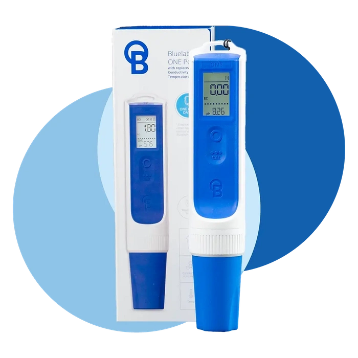 • Bluelab One Pen - pH, temperature and EC solution meter with IP68 resistance class