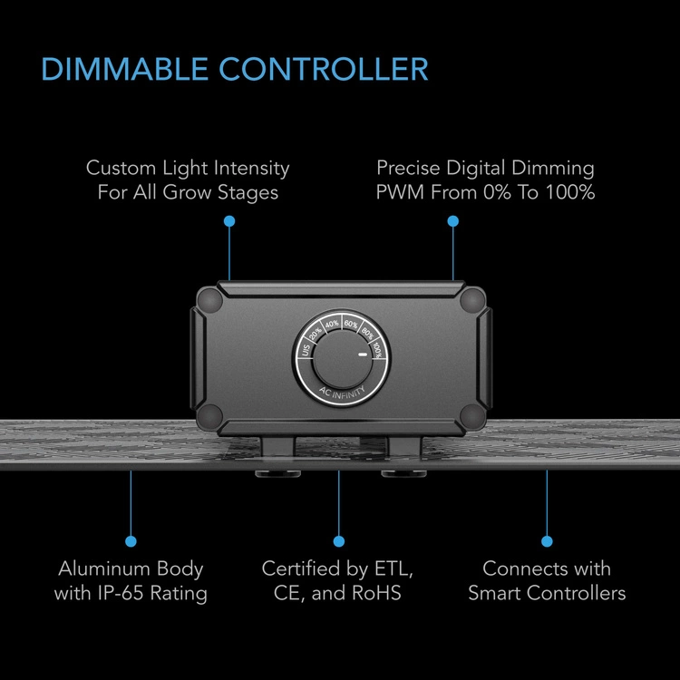 - Dimmer enables 0 to 100% brightness. Can connect with our smart controllers to access grow cycles, scheduling, and app.