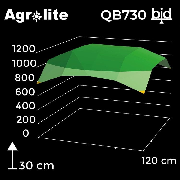 • The Agrolite LED QB 730W 2.9 BID is a professional grow light designed for uniform coverage with BID technology. Its high efficiency (2.9 µmol/J) and 730W power ensure vigorous growth and abundant flowering.