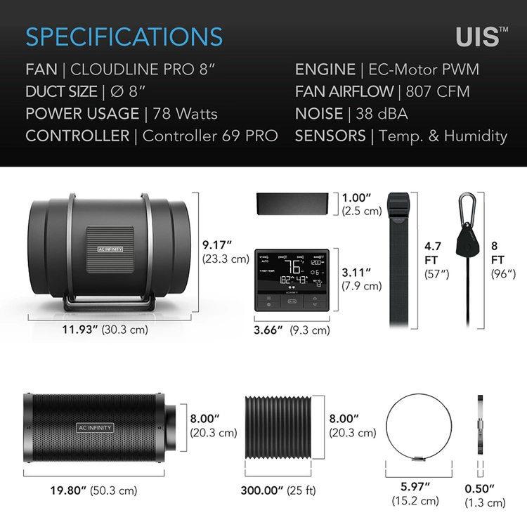 AC INFINITY Air Filtration Kit PRO 8", Inline Fan with Smart Controller, Carbon Filter & Ducting Combo - BEST WAY TO CONTROL ODORS IN YOUR GROW SPACE
