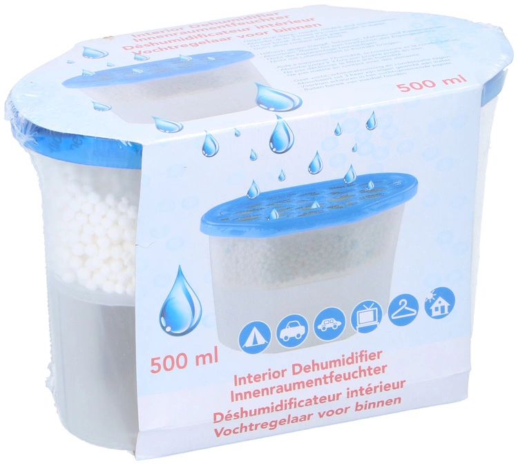 • Dehumidifier with a 500 ml capacity, it efficiently absorbs humidity and helps prevent mold and mildew growth.