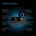 Integrating these components is the CONTROLLER 69 PRO, engineered to provide each device with shared or independent programming. This central control unit can set dynamic programs to activate your grow devices in response to VPD (vapor pressure deficit) levels, temperature, and humidity to help you further dial into your ideal growing space. Timer, cycle, and schedule modes add custom on-demand activation for a variety of indoor growing uses. Securely connect with the AC Infinity app via Bluetooth to remotely access your devices, unlock advance programs, set alarms, and notifications, view historical charts, and export CSV data. Connect to the app via WiFi to access your indoor grow system from anywhere outside the boundaries of your home.