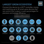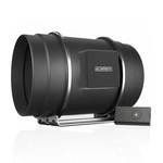 A smart inline duct fan designed to quietly ventilate hydroponic grow rooms, boost heating/cooling to rooms, circulate fresh air, exhaust projects, and cool AV closets. Featuring an inline mixed-flow design, the duct fan can maintain airflow even in high static pressure applications. It is built with a PWM-controlled EC motor for quiet and energy-efficient performance. The motor box containing the fan’s impeller and blades can be detached from the mounted frame for easy cleaning and maintenance. Includes a smart controller with dynamic climate and time-based programming and can connect to multiple UIS devices. This product is a part of the UIS™ platform of grow devices and smart controllers, designed to integrate with each other to achieve your ideal environment.