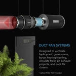 This quiet duct fan system is popular in a variety of applications including cooling AV equipment rooms, closets, racks, and cabinets. Due to its low noise and advanced control features, it’s also used in various air circulation and ventilation projects including hydroponic grow rooms and tents, exhausting bathrooms and attics, and other installations.