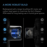 This clip fan features a robust EC motor specially designed in size and construction to lengthen oscillation lifespan. Its clamp is re-engineered with a compact metal build that saves space in your grow tent and uses a vise grip-like design for greater security on tent poles. Other reinforced features include a brushless motor design, resilient carbon steel gears, and dual-ball bearings for omnidirectional mounting. These components create the heaviest-duty clip fan that is long-lasting, energy-efficient, and can generate powerful circulation.