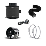 Fan -Channel connection/diameter: 100mm (4") -throughput 135 m^3/h -Power: 14W -Maximum operating temperature: 0 - 40°C -Operating volume level: 37 dBA -Security standard: IPX4 -Strong, robust and economical -Vibration-free operation -Material: ABS plastic -Black -Fan without power cord, it must be purchased separately Carbon filter -Filtering 250 m3/h -Possibility of self-exchange of activated carbon -Simple and convenient -100% safe and 100% effective -Easy to install and use Ventilation duct: -Length: 1 m -Size: 4" (10.16 cm)